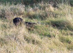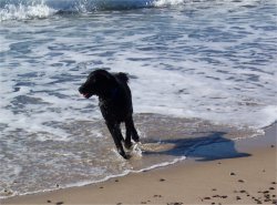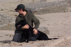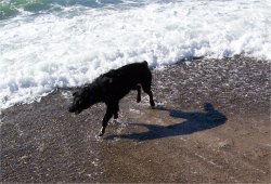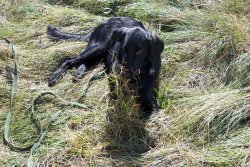 Tja, Frauchen, das mit dem 'bei Fuß' gehen üben wir aber noch ein paar mal... |