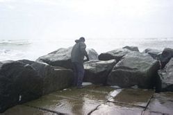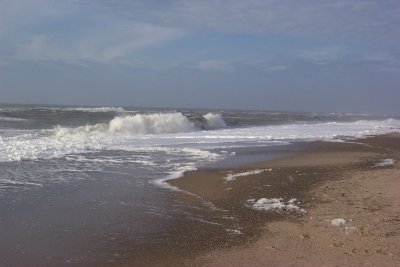 Wellengang, der sogar bei den Wellenbrechern Schaumkronen zurück ließ.