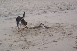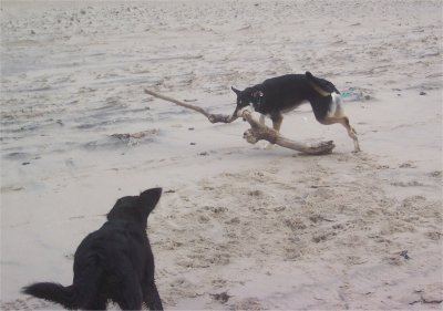 am Strand toben. Los, Stefan, wer ist stärker?