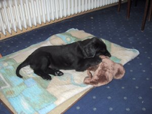 Das war ein ganz schön komisches Gefühl, denn ich musste meine Geschwister, meine Mama, Dusty und meine 'Ziehfamilie' Preiß verlassen. Immerhin habe ich hier die ersten 8 Wochen meines Leben verbracht und bereits viel gelernt. Eine bessere Welpenstube kann man sich nicht wünschen! Hier habe ich gelernt, was es für tolle Geräusche gibt und wie man die unterschiedlichsten Untergründe überwältigen kann, ohne Angst zu haben.