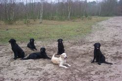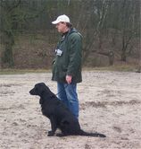 Zuerst mussten wir ein paar Gehorsamsübungen absolvieren, die wir natürlich alle hervorragend durchgeführt haben (für unser Alter) oder, Andrea? Dann durften wir auch noch ein Dummy suchen und natürlich viel mit unseren Geschwistern spielen. Wirklich weit gewandert sind wir dann nicht mehr, aber richtig traurig war darüber auch kaum einer. Vor allem knurrte dann schon bei dem einen oder anderen Frauchen/Herrchen der Magen. Also 'wanderten' wir gegen 12:30Uhr wieder zurück zum Parkplatz und ließen uns von Frauchen und Herrchen zum Lokal fahren.