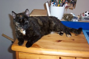 Das ist Randy, eine Schildpatt-Hauskatze. |