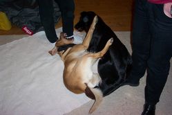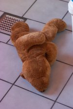 Teddy ist wesentlich widerstandsfähiger. Leider ergibt er sich immer viel zu schnell und wirft sich auf den Rücken. Feigling!! |